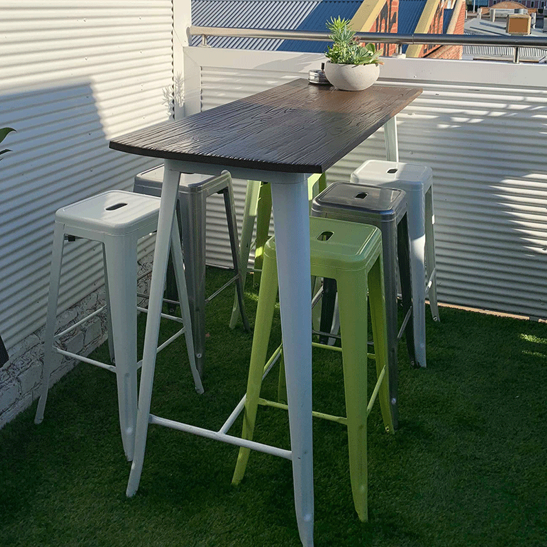 Replica Tolix Wooden Top Bar Table, 60 x 60 x 107cm