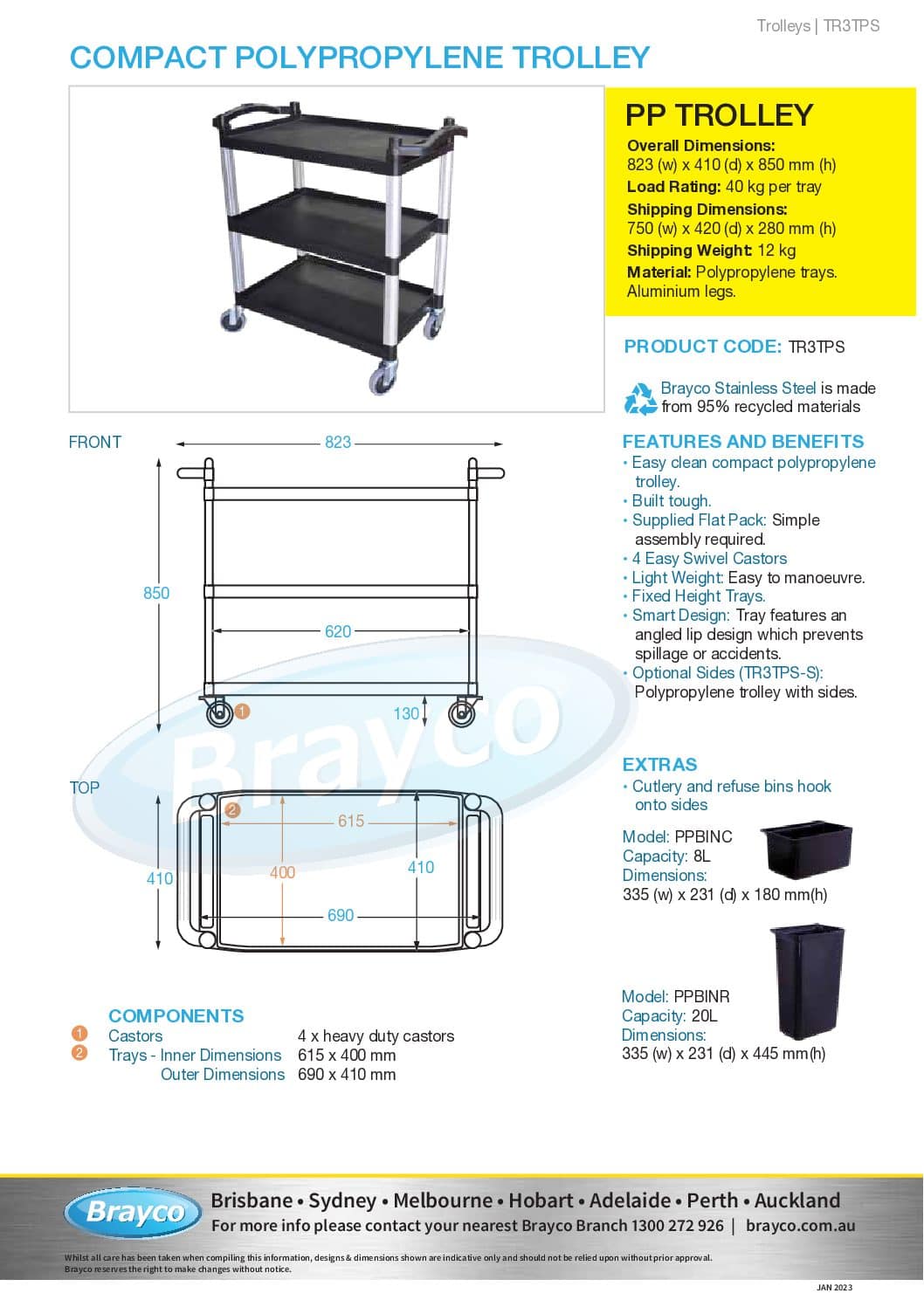 Hooks onto the side of the polypropylene trolley to save space in trays while adding an extra 20L capacity. Click here to view.