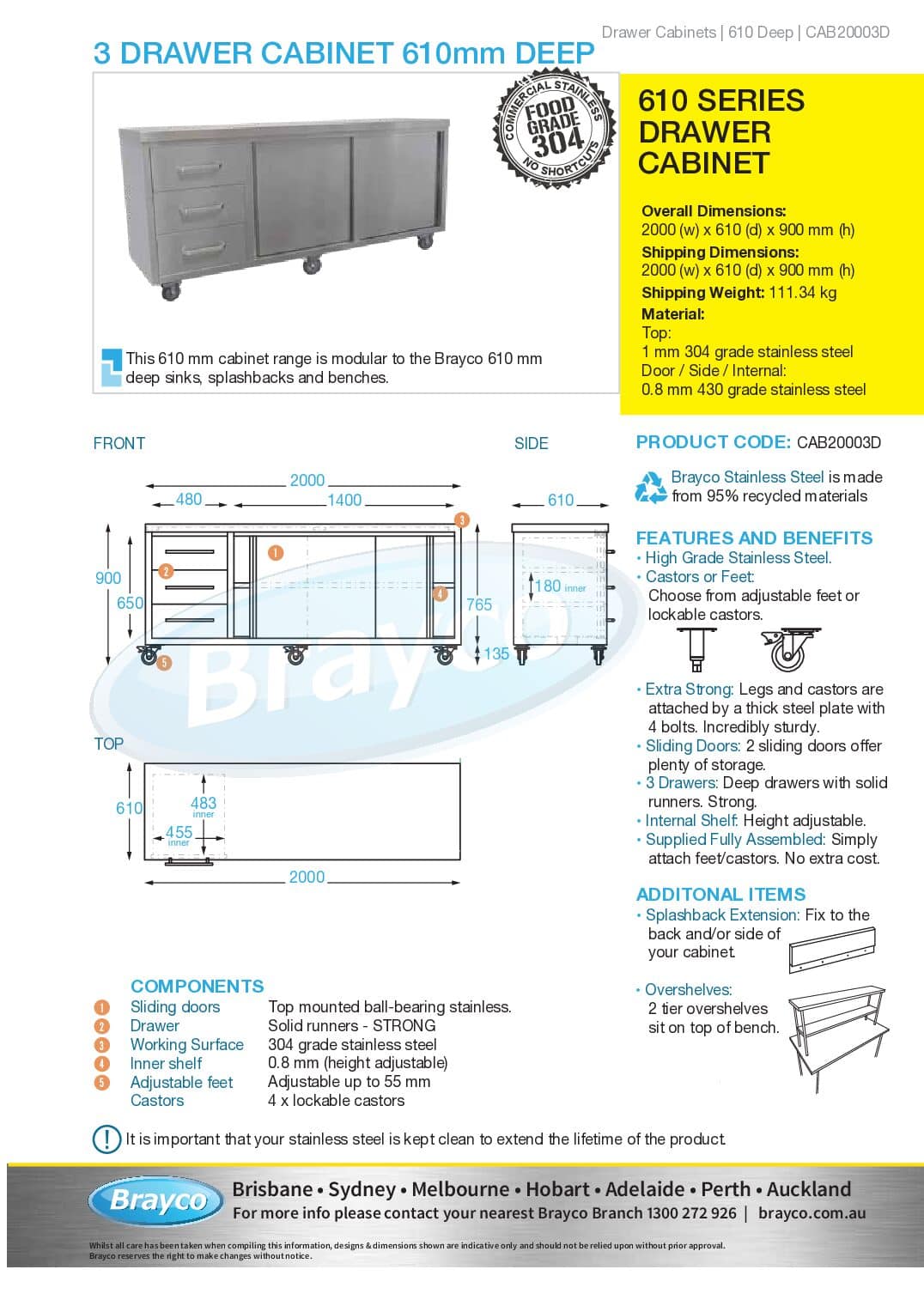 This cabinet is modular to 610mm deep splashback benches, flat benches and sinks.
