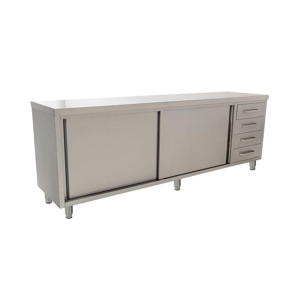 Stainless Commercial Kitchen Cabinet, 2490 x 610 x 900mm high.