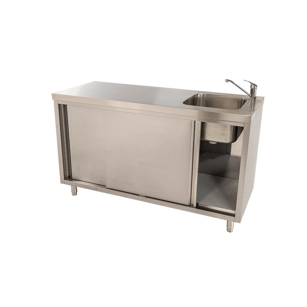Stainless Steel Cabinet with fully integrated sink on right, 1500 x 610 x 900mm high.