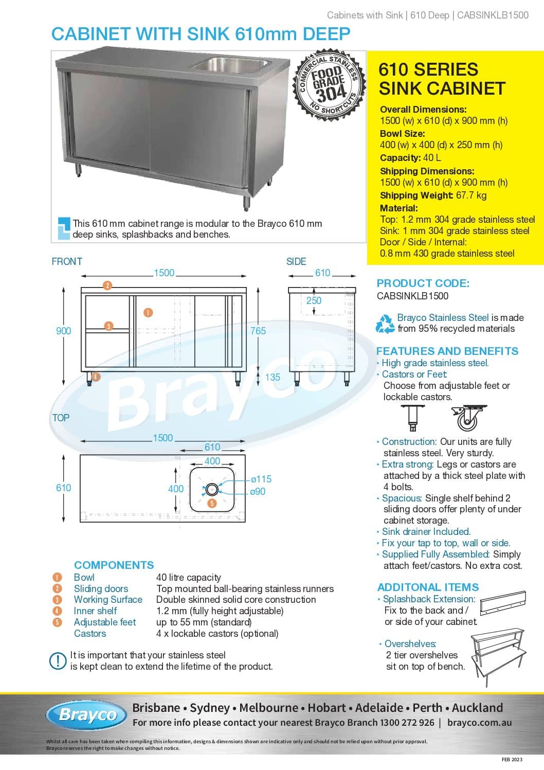 Brayco Stainless Steel is made from 95% recycled materials.
