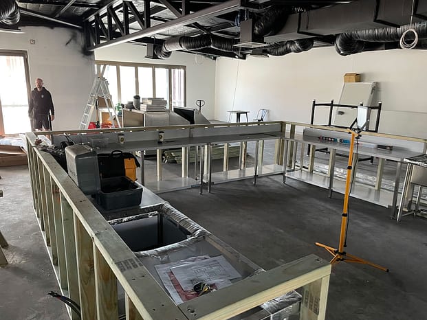The splashback benches are industry standard, ready for all the pummelling of a pumping bar, and easy to assemble and clean. Rio’s fitted the timber bar over the splashback component for a seamless look, while underneath power points, taps and wiring were cut and concealed within the splashback. A Brayco rail kit was used to stabilise and reinforce the benches, while storing a well-used dishwasher.