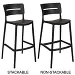 2 options: stackable or add the rear footrest for a heavy-duty reinforced bar stool.