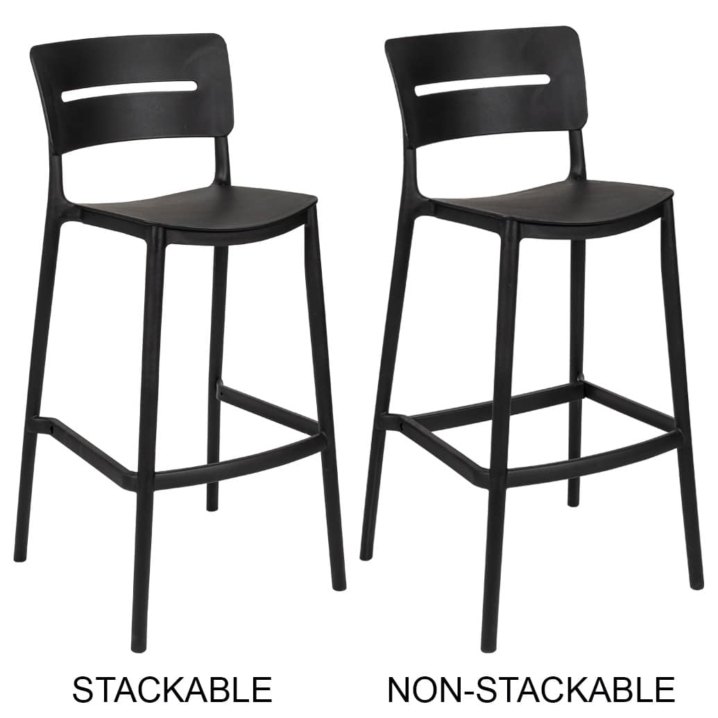 2 options: stackable or add the rear footrest for a heavy-duty reinforced bar stool.