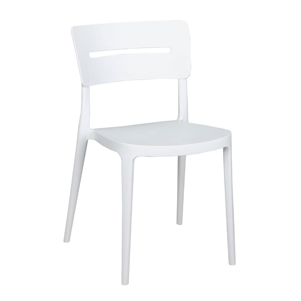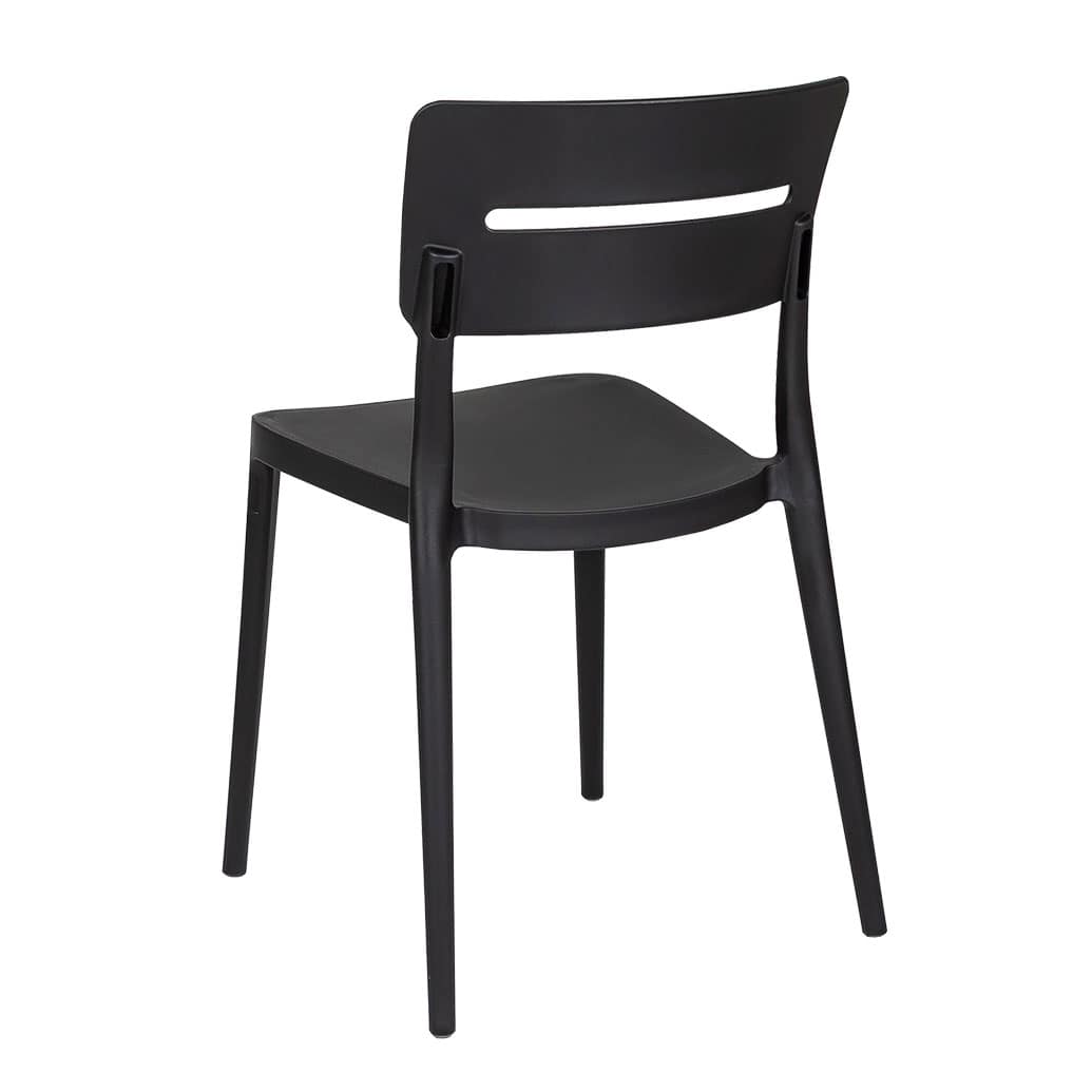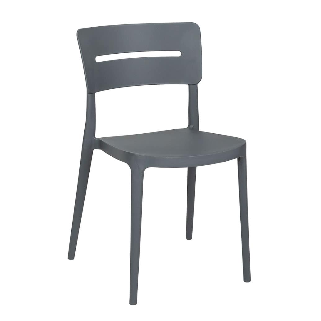 A well-priced polypropylene dining chair with a “slit” feature in the curved backrest.