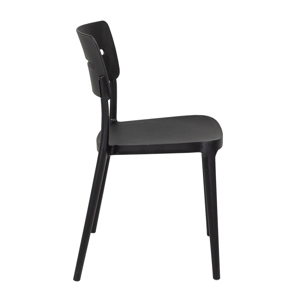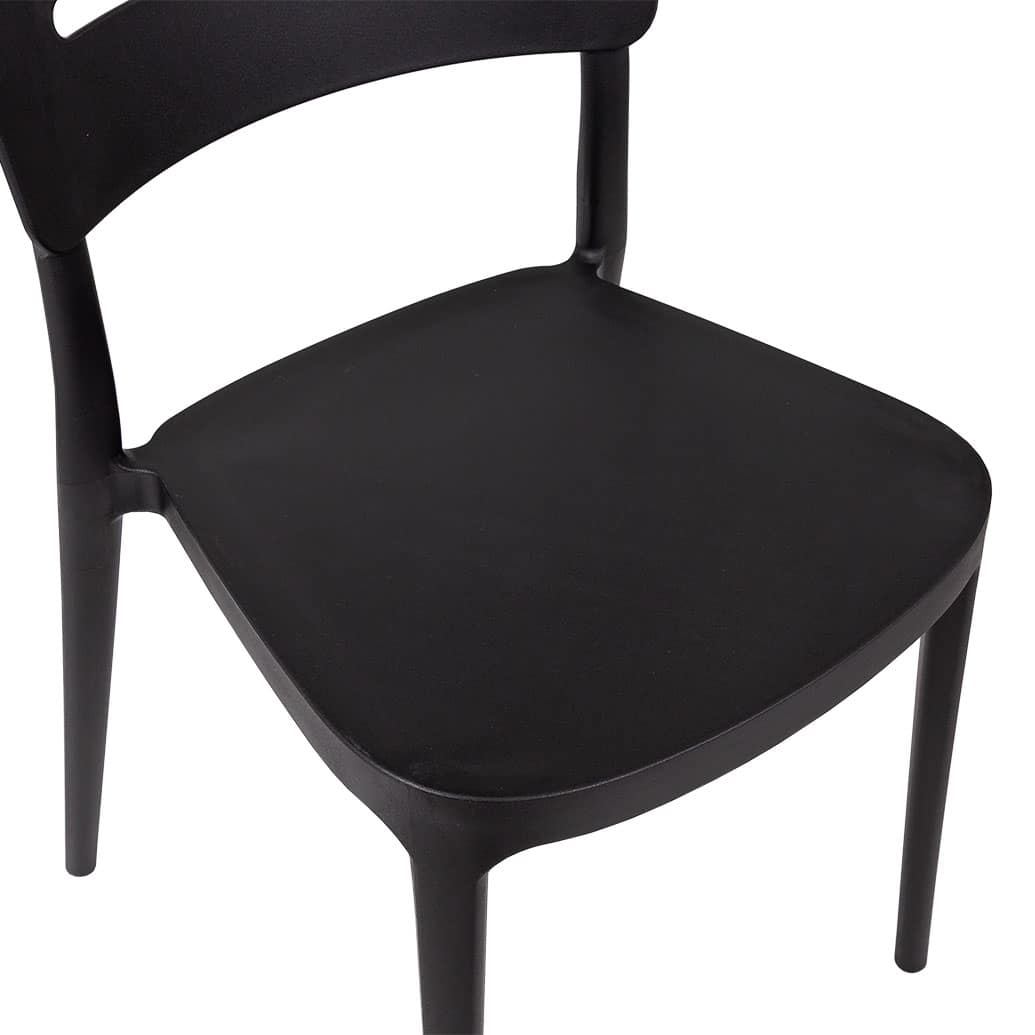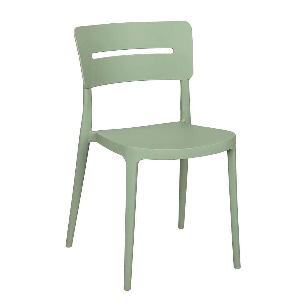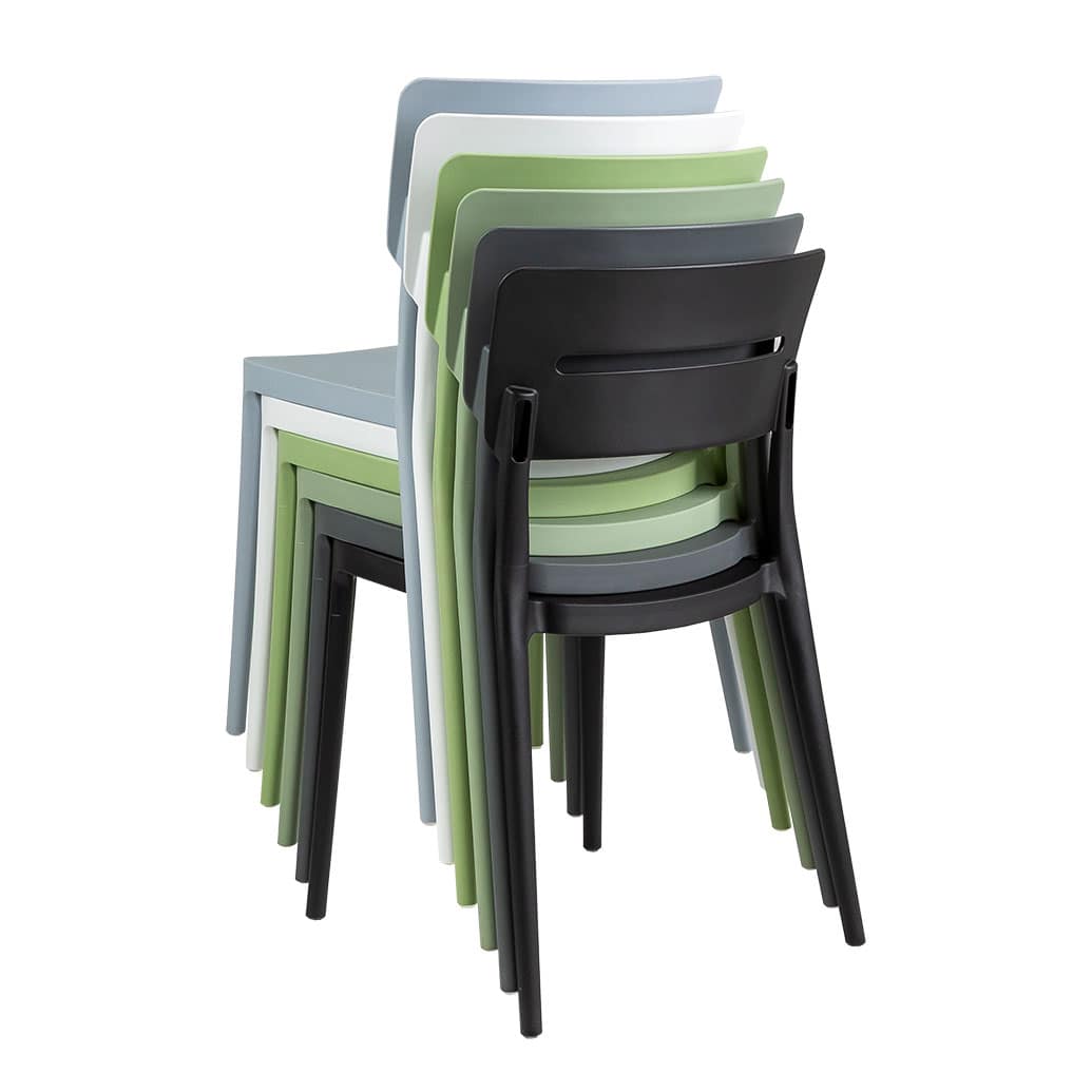 A well-priced polypropylene dining chair with a “slit” feature in the curved backrest.
