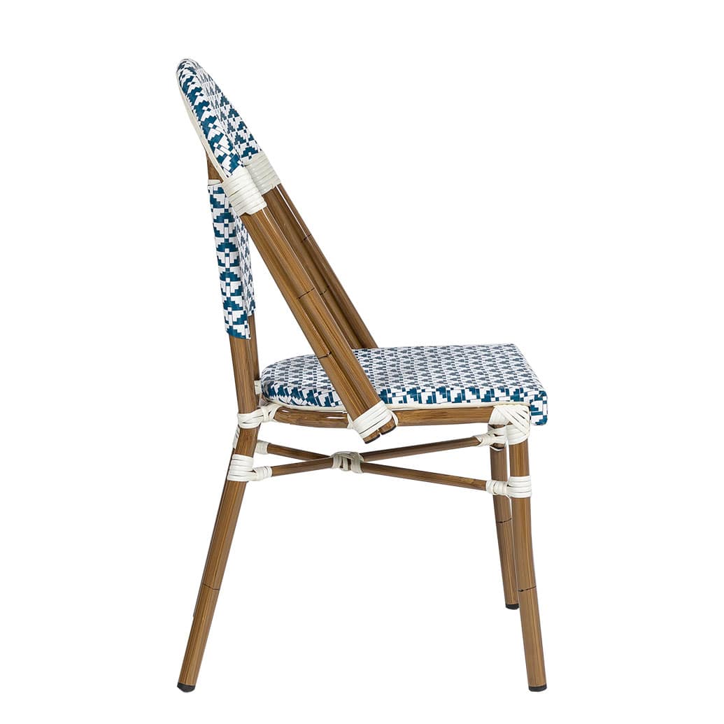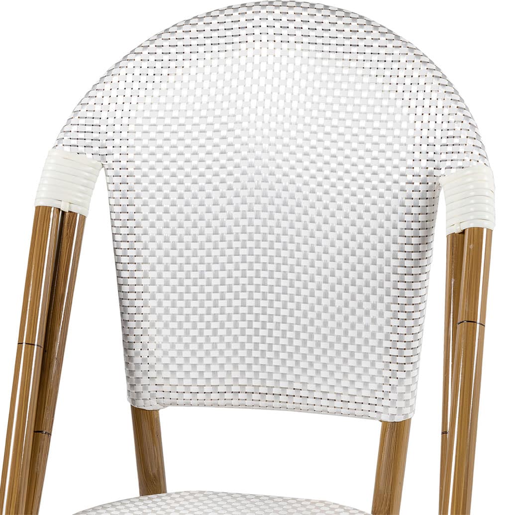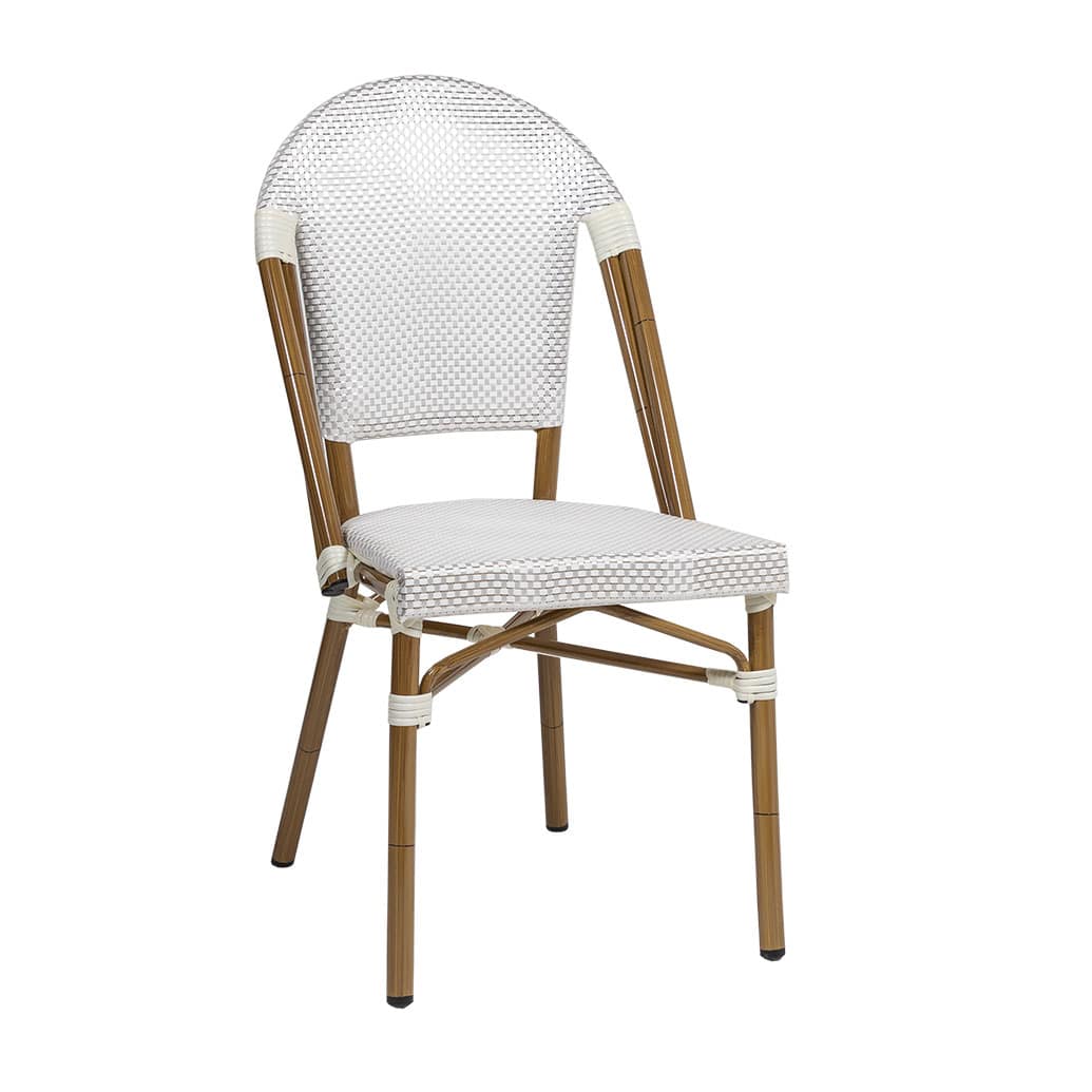Beautiful cafe chair with a smooth all-weather Textaline flat weave seat and back.