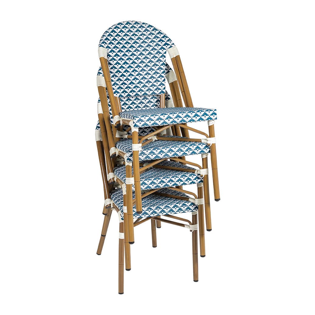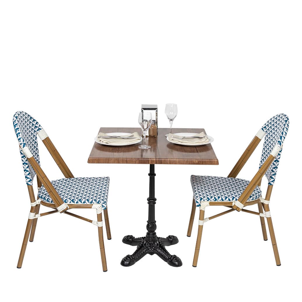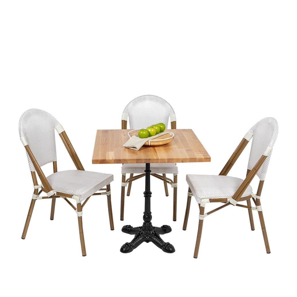 Beautiful cafe chair with a smooth all-weather Textaline flat weave seat and back.