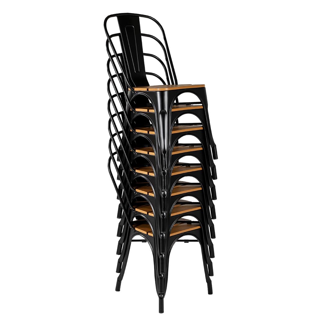 • Polywood seat – all weather, durable faux timber slats.