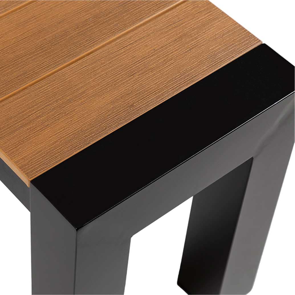 • Polywood top – all-weather, durable faux timber slats.