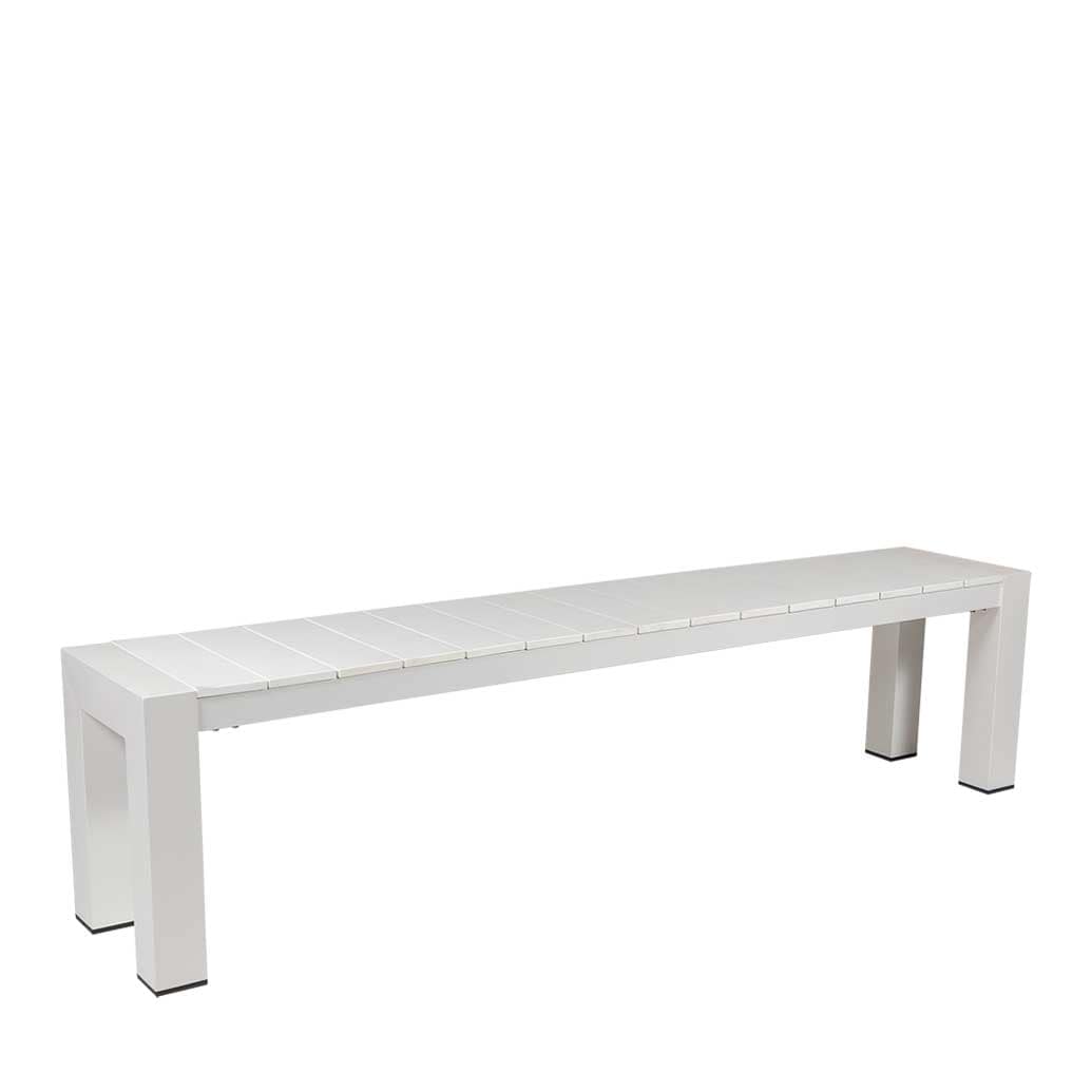 The Cannes Bench matches the Dining Tables, completing our exclusive outdoor aluminium range.