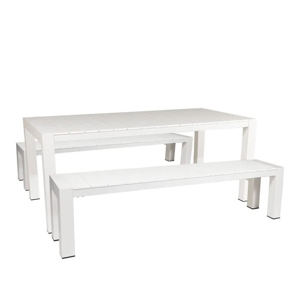 The Cannes Bench matches the Dining Tables, completing our exclusive outdoor aluminium range.