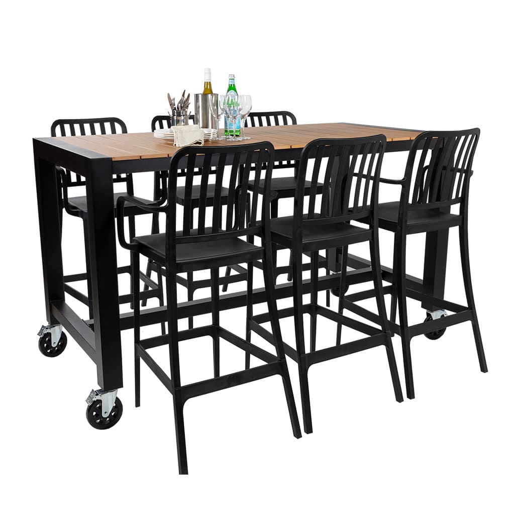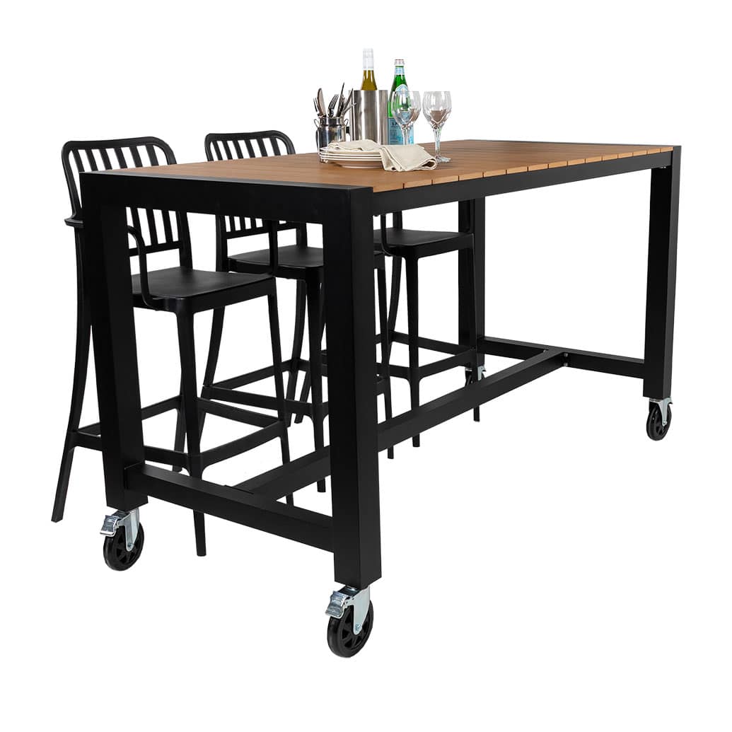 The Cannes range of dining and bar tables adds a cool industrial style to your garden, terrace, or patio. Made of aluminium and water-resistant Polywood faux timber slats, this furniture range is stable, sturdy, and easy to maintain. With the industrial design, these tables present you with a great combination of functionality and style.