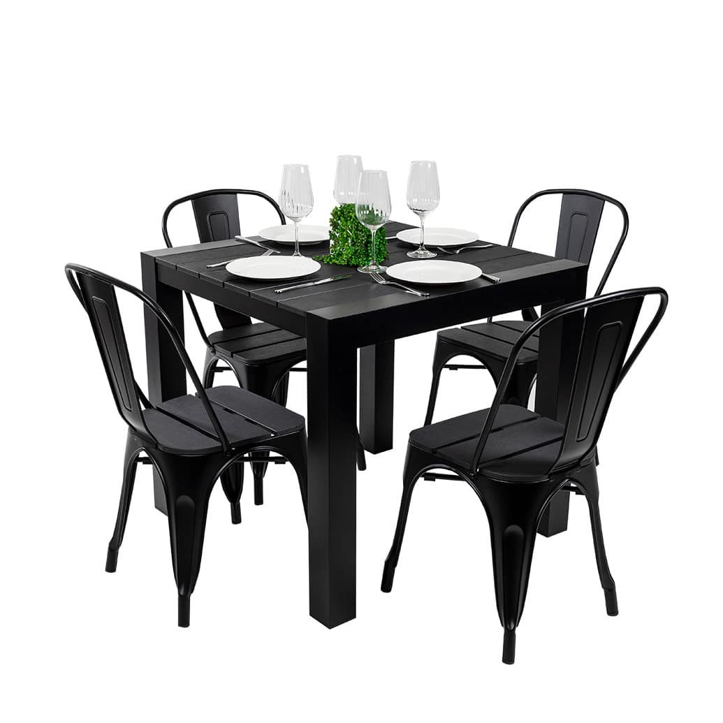 • Black and timber grain polywood is made from recycled materials.