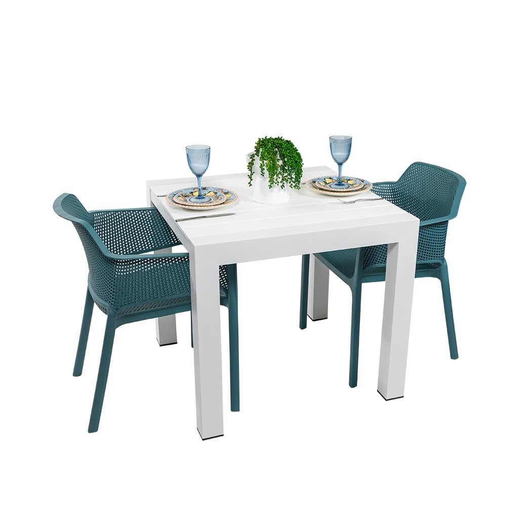 The Cannes Dining Table is part of an exclusive range of low-cost, durable outdoor café chairs, stools, and tables from Corsica.