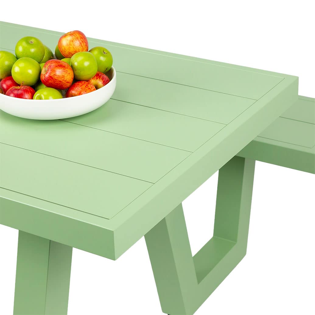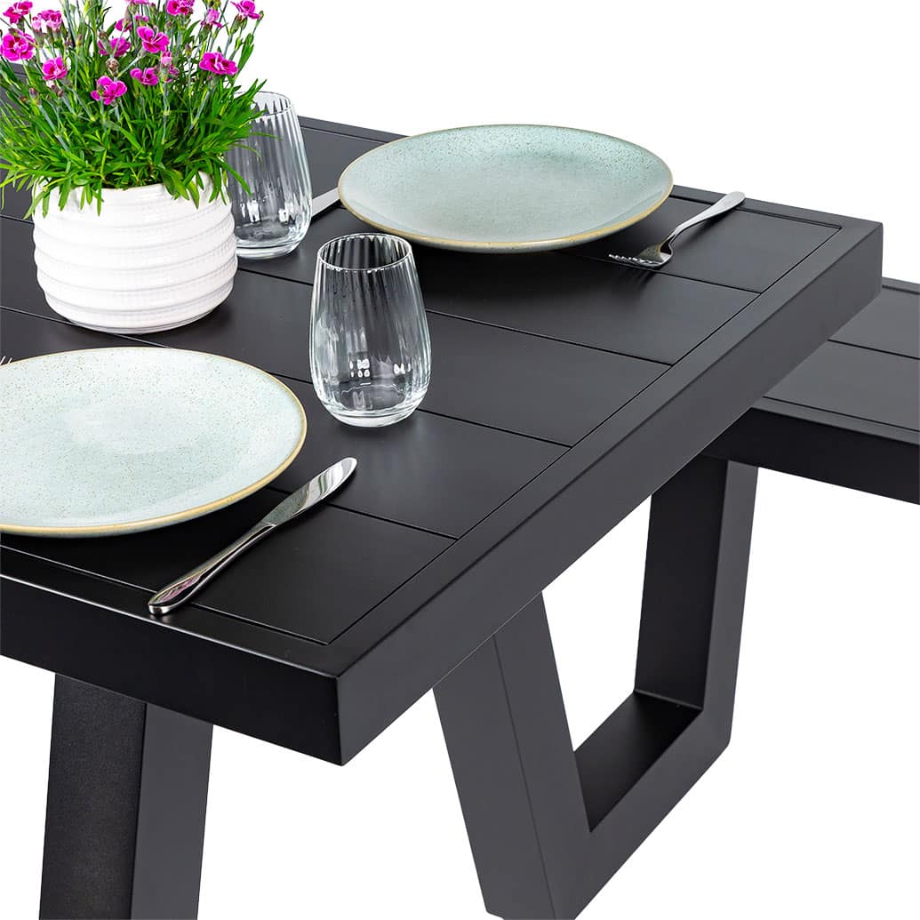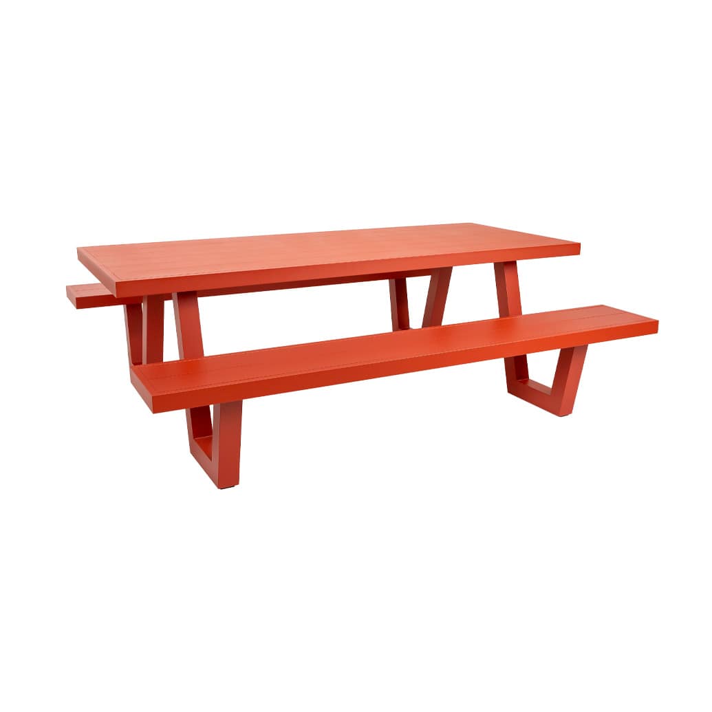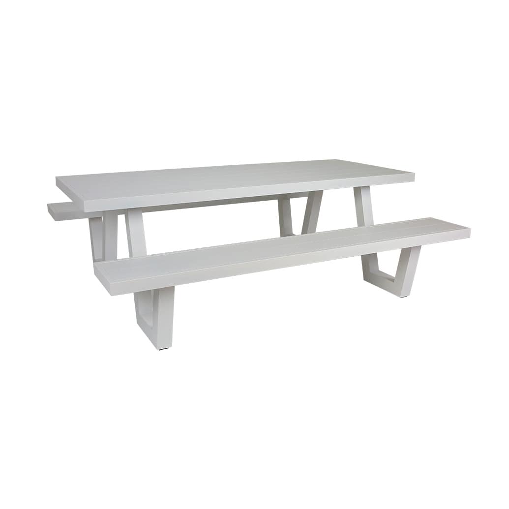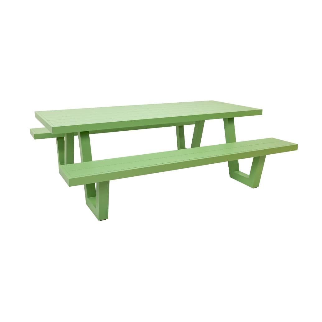 This picnic table is Wave named for the feature legs. Made from all-weather aluminium.