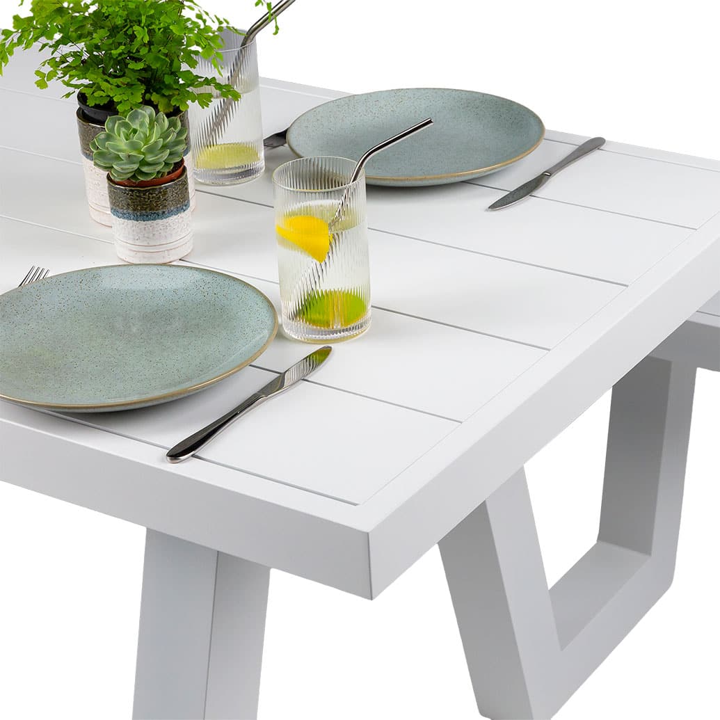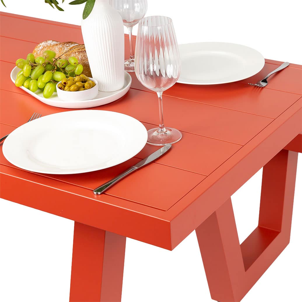 The Corsica collection, featuring Aluminium and Polywood faux timber tables, is designed for durable, low-maintenance indoor and outdoor use. To preserve their fresh appearance over time, it’s advisable to shield these products from the elements when not in use. We recommend using a protective cover or storing them undercover when not in use. If located in close proximity to the sea, take extra precautions to prevent damage from sea salt corrosion.