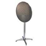 Versatile folding table that can be assembled at either dining or bar height. Includes base and stainless steel table top in 2 sizes.