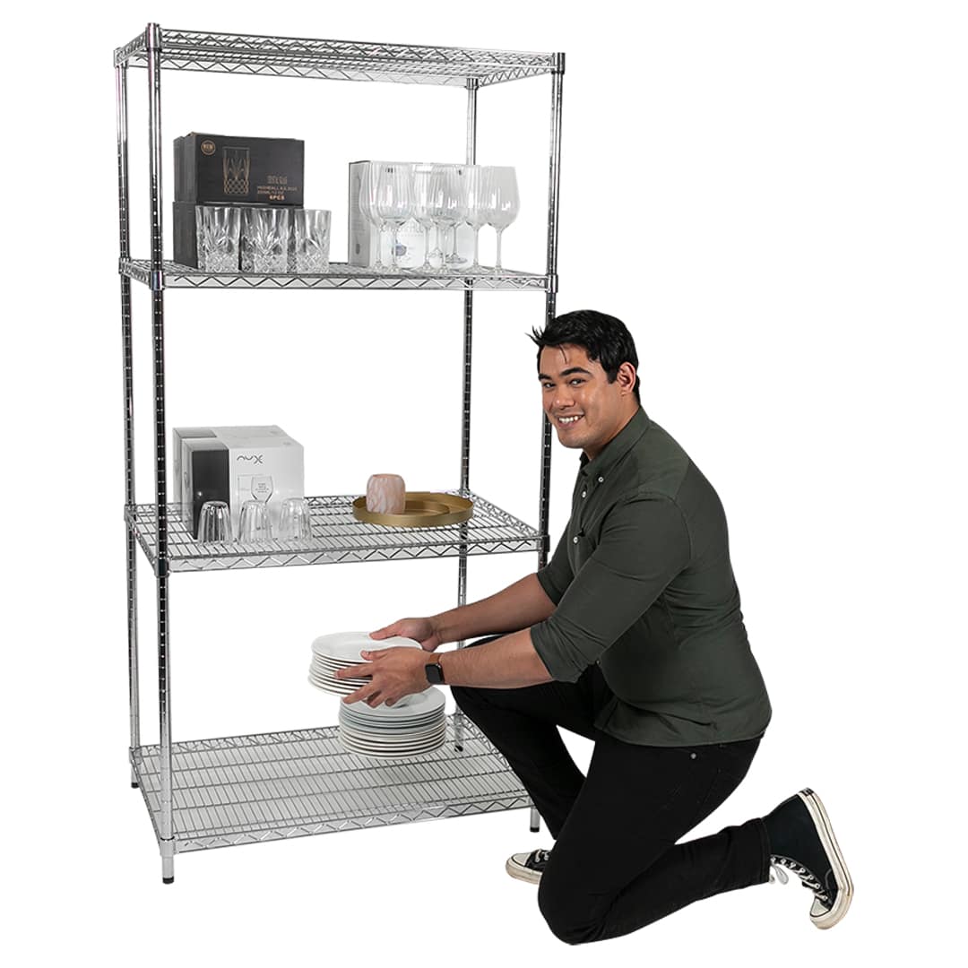 This chrome shelf is a handy addition to the 4 shelves that are supplied with your 914 x 610mm shelf unit.