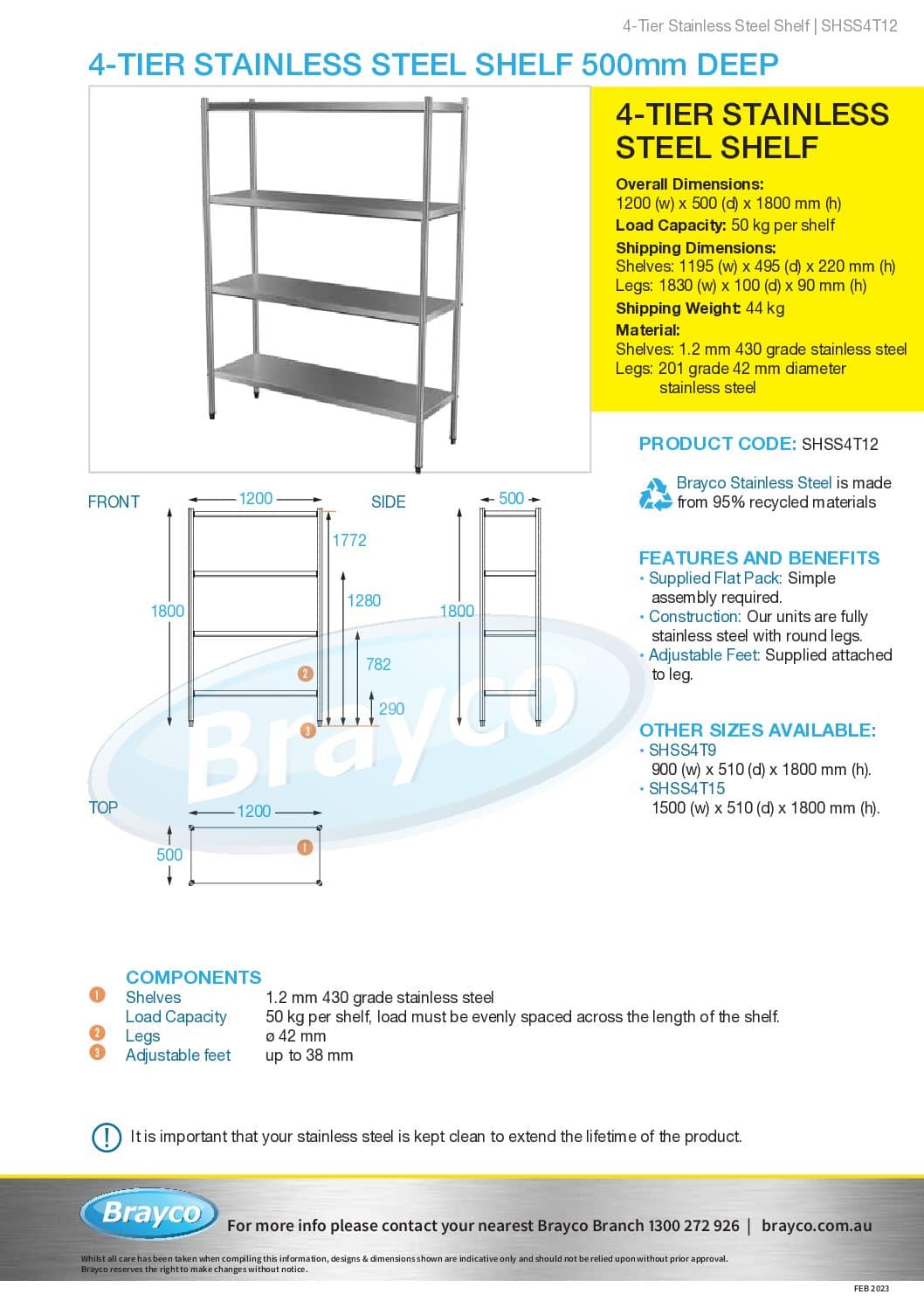 When only stainless will do, the 4-tier stainless shelving unit is here to save the day. This shelf unit stands 1800mm high and has screw in shelves, along with adjustable feet. These units also come in three lengths to fit your space.