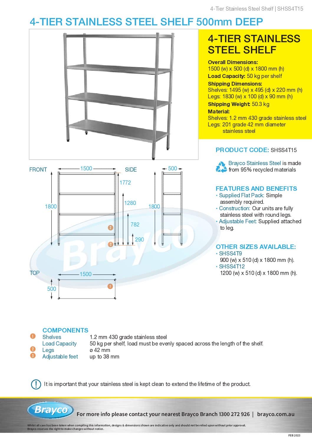4-Tier Stainless Steel Kitchen Shelf Unit