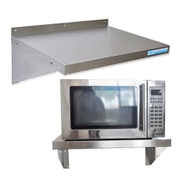 Deep wall shelves help free up bench space by allowing you to put big items, such as a microwave or toaster oven up high. This leaves your space free to get some serious cooking done.