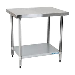Small space? No problem. This 430 grade stainless bench is great in a tight squeeze. A very strong little bench. It comes with a 1.2mm galvanised, height adjustable under shelf. All of our benches come with loads of options for upgrades including stainless steel shelves, stainless steel legs, castor wheels and screw down feet. Dimensions and specs in the tabs below.