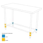 Designed to stabilise and reinforce a bench when removing the undershelf. These stainless rails can be fixed anywhere on the bench legs. Image above shows configuration for parts supplied in this kit. Leg brace rail kits allow extra storage room but provide stability and strength when removing the shelf.