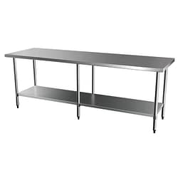 This high-quality 304 grade stainless steel bench is the Conan the Barbarian of benches. It will take on anything that stands before it. It comes with a 1.2mm galvanised, height adjustable under shelf and stainless legs. There are loads of options for upgrades including stainless steel shelves, high grade stainless steel legs, castor wheels and screw down feet. Dimensions and specs in the tabs below.