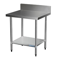 Designed with high-quality 304 grade stainless, this splashback bench will stand up to pretty much anything. This bench comes with a 1.2mm galvanised, height adjustable under shelf and stainless legs. Loads of options for upgrades including stainless steel shelves, high grade stainless steel legs, screw down feet and splashback extension. Dimensions and specs in the tabs below.