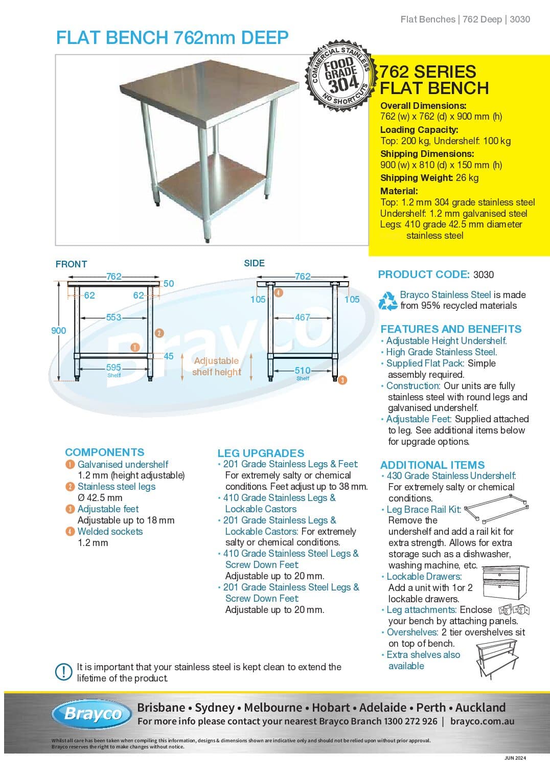 See upgrades to add high grade stainless legs, screw down feet or castors.