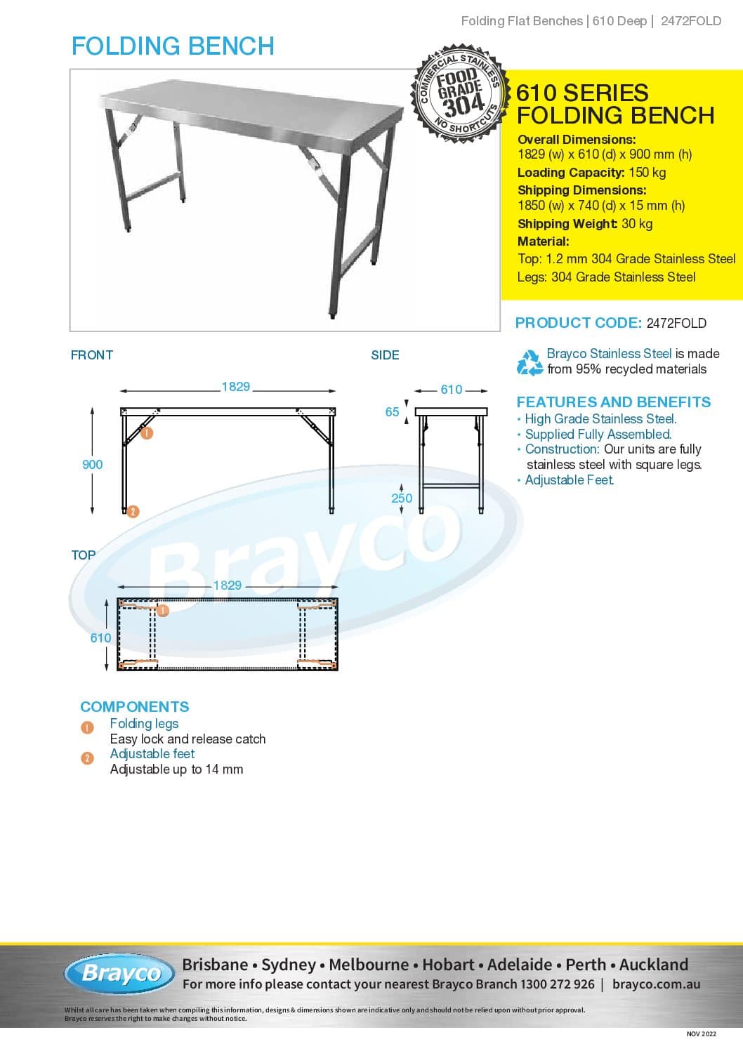 Brayco Stainless Steel is made from 95% recycled materials.
