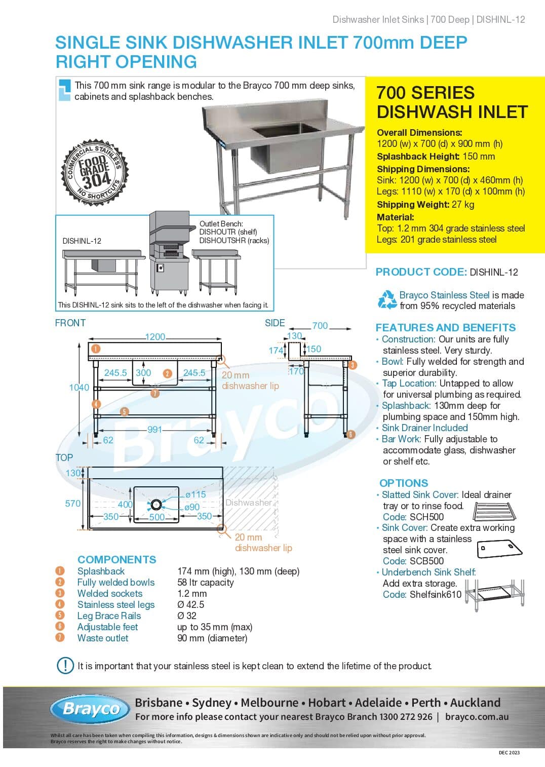 Brayco Stainless Steel is made from 95% recycled materials.