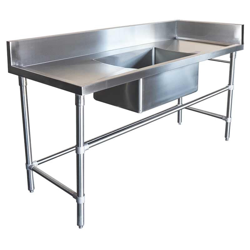 Add a stainless steel splashback extension to convert your sink or bench to a corner unit.