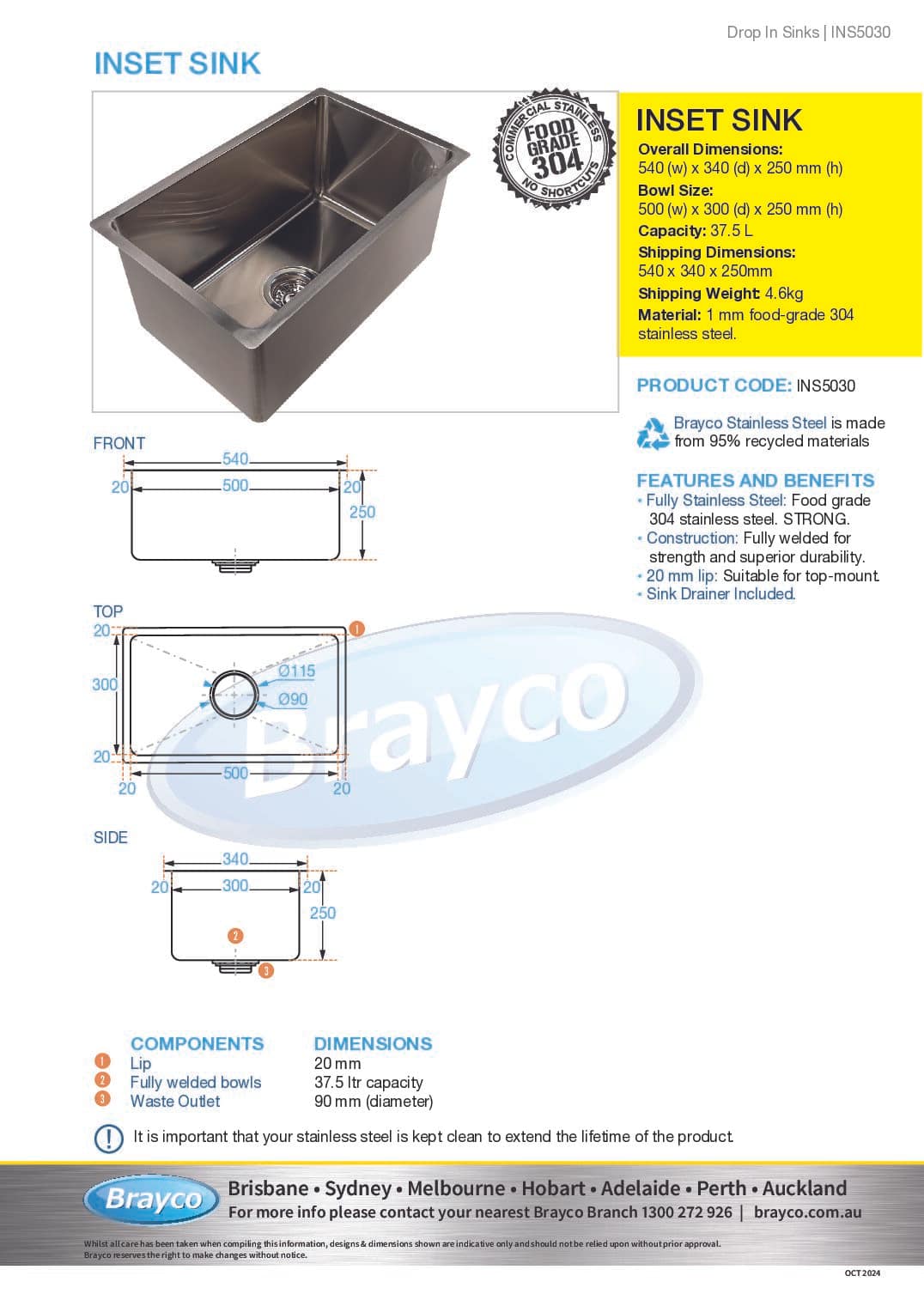 20mm lip allows you to sit this drop in basin on our Brayco Stainless Steel Benches securely.