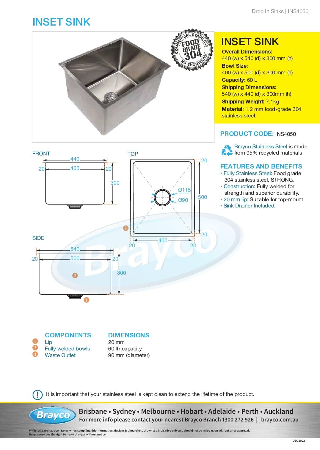20mm lip allows you to sit this drop in basin on our Brayco Stainless Steel Benches securely.