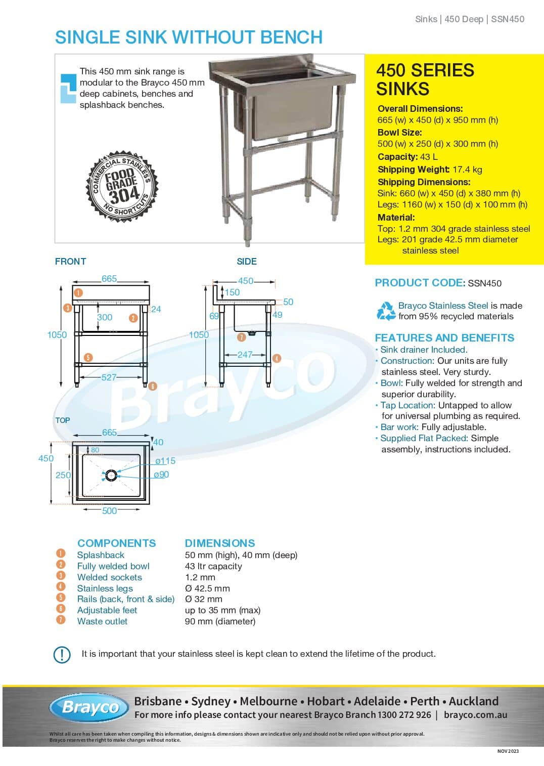 Brayco Stainless Steel is made from 95% recycled materials.