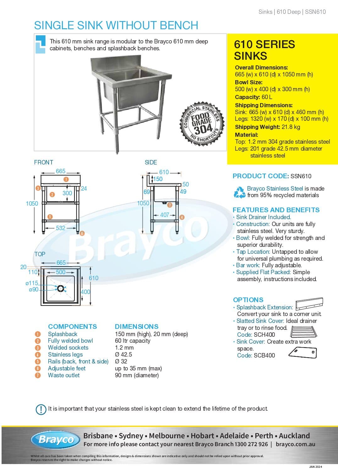 Create extra work space with a stainless steel sink cover. Cover sizes are available to suit 610 or 700mm sinks.