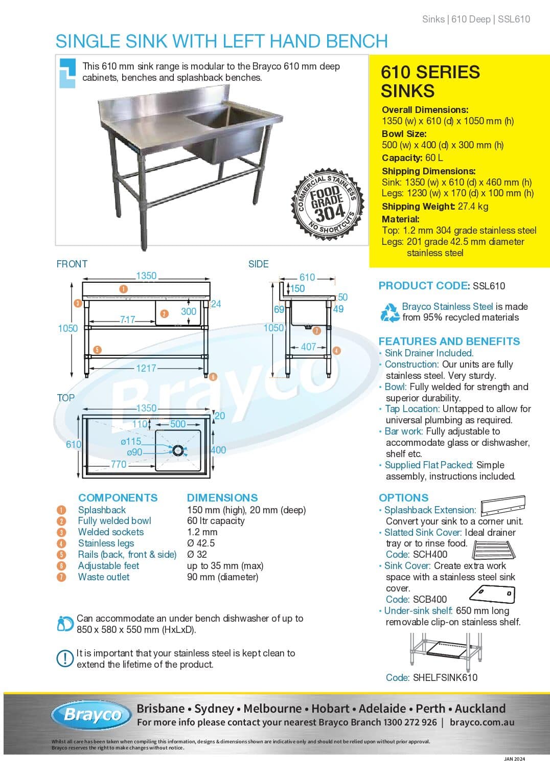 Create extra work space with a stainless steel sink cover. Cover sizes are available to suit 610 or 700mm sinks.